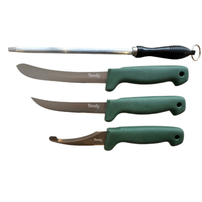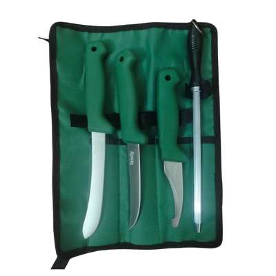 Letar du efter ett pålitligt slaktset som ger full kontroll genom hela slakt- och styckningsprocessen? Det här kompletta setet innehåller tre högkvalitativa knivar samt ett brynstål i kolstål, allt förpackat i ett slitstarkt nylonfodral. Perfekt för jägare, hemmaslaktare och dig som vill arbeta med rätt verktyg från start till mål.