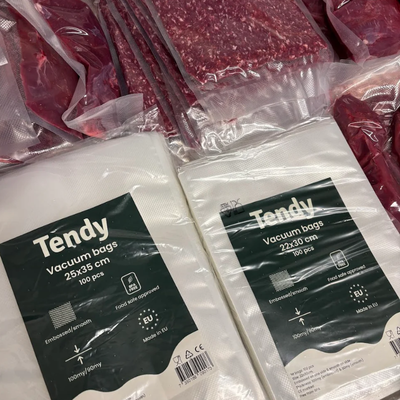 Skydda och bevara dina råvaror på bästa sätt med Tendy vakuumpåsar, tillverkade i EU och utvecklade för säker och pålitlig försegling. Perfekta för jägare, slakterier, hemmakök och alla som vill förlänga hållbarheten på viltkött, fisk och annat livsmedel.