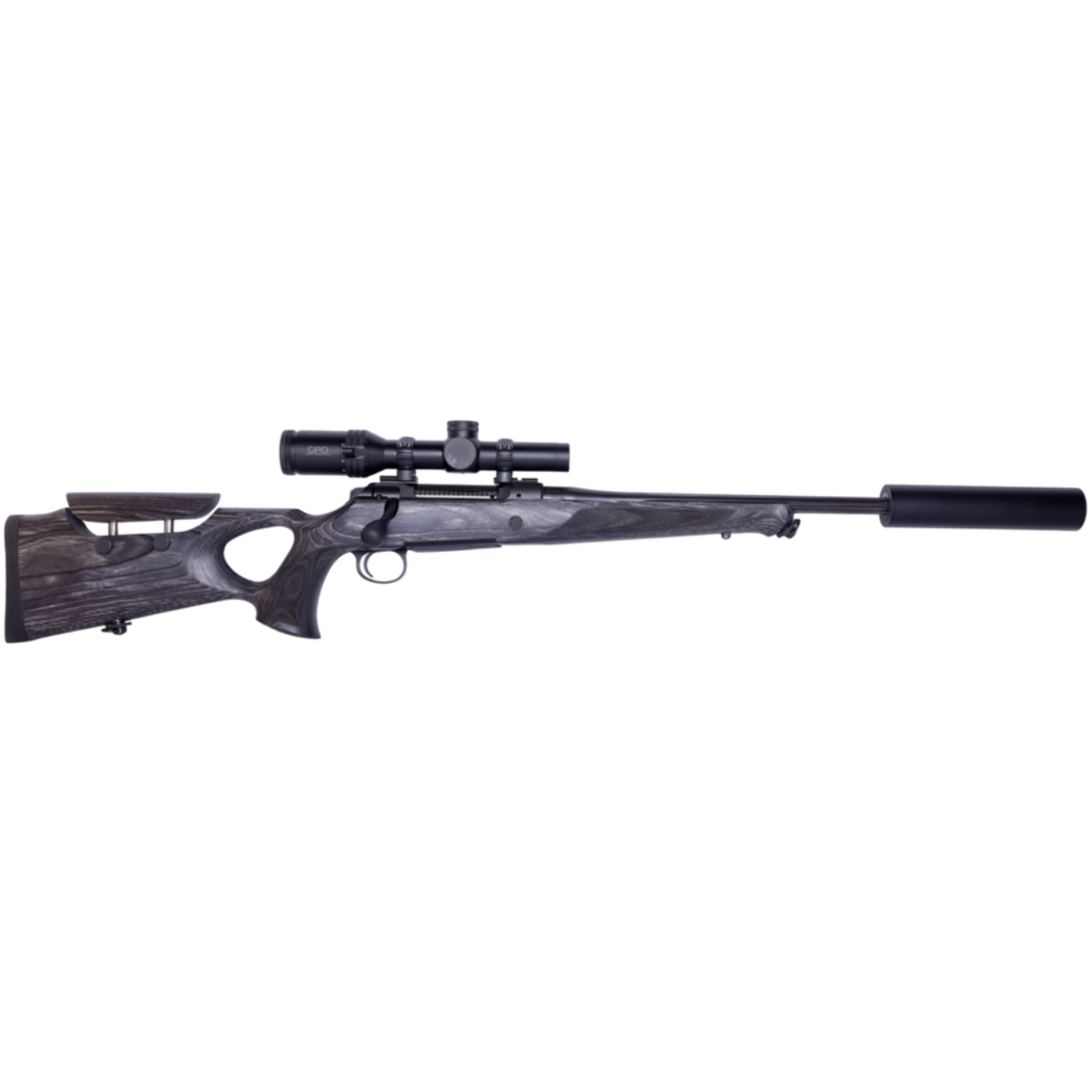 Ett välbalanserat vapenpaket med fokus på precision och flexibilitet. Sauer 101 GTI med ergonomisk tumhålskolv ger stabil anläggning och pålitlig prestanda i alla väder. Paketet inkluderar GPO Spectra 6x kikarsikte, där du kan välja mellan 1–6x24i eller 2–12x50i mot pristillägg, samt Scandium Mount M30 stålmontage och RCC Hunter ljuddämpare. En komplett lösning för många typer av jakt.