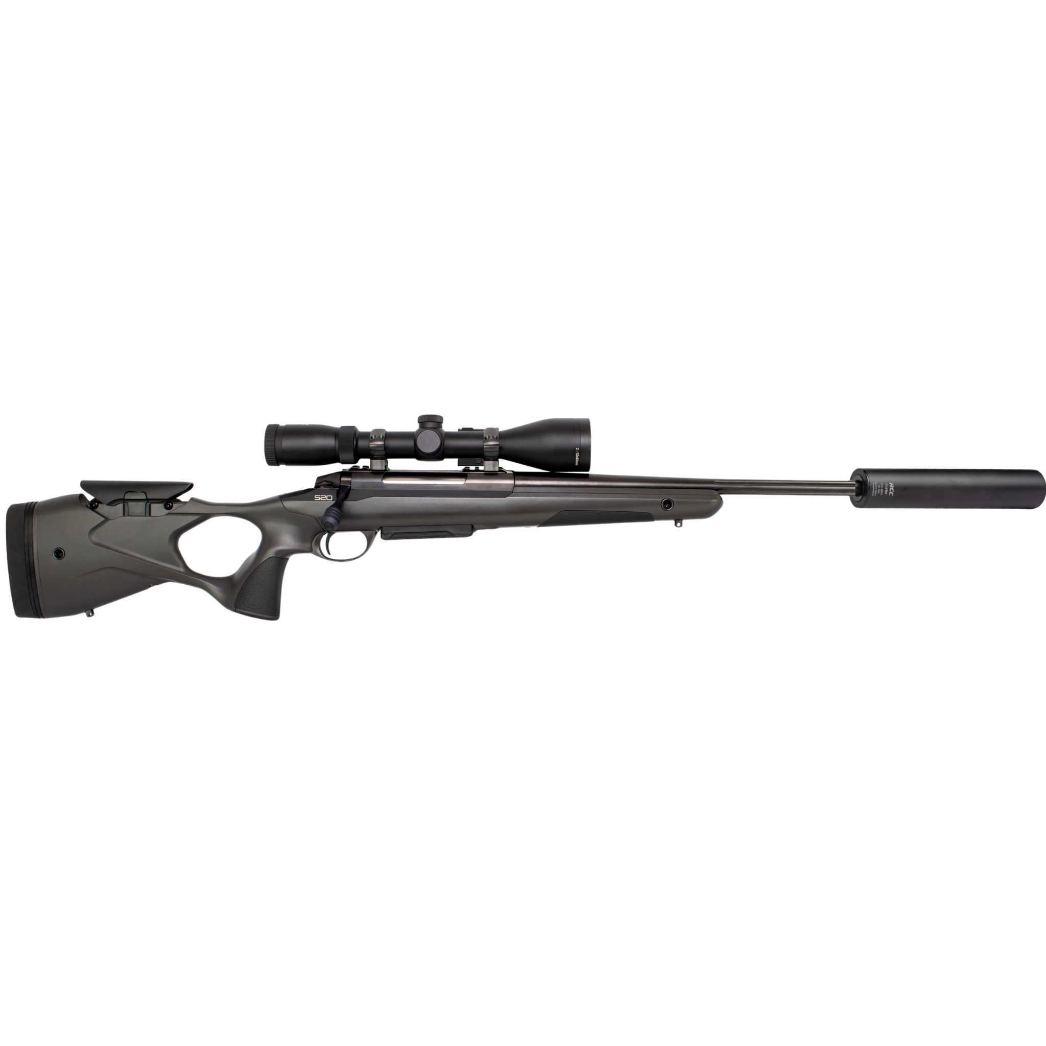Sako S20 är ett modernt och modulärt kulgevär som kombinerar jaktprestanda med precisionsskytte. I paketet ingår Scandium X4 2,5–10x50i kikarsikte, stabilt Scandium Mount M30 stålmontage för 30 mm tub samt den smidiga RCC Hunter ljuddämparen. En genomtänkt utrustning som ger bra balans, hög precision och komfort under långa jaktdagar.
