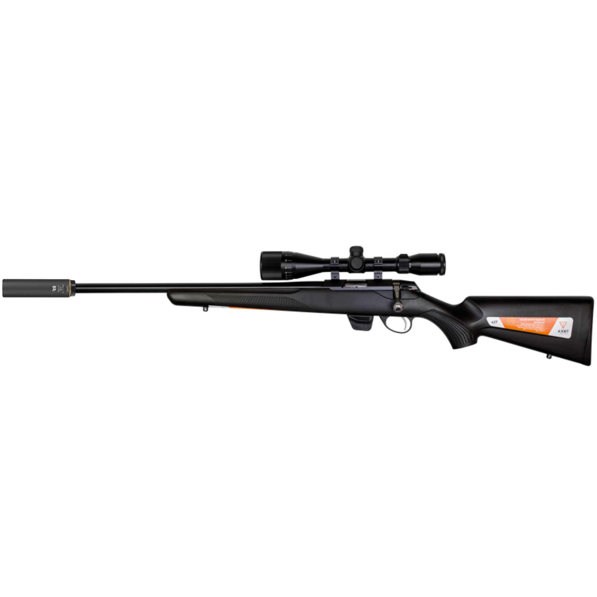 Ett smidigt och prisvärt paket för småviltsjakt och träning. Tikka T1x är ett lätt och välbalanserat gevär med hög precision. Paketet kompletteras med Scandium X22 3–9x40AO kikarsikte för flexibel förstoring samt den ultralätta Stalon RF ljuddämparen – en perfekt kombination för skytte på bana och jakt på mindre vilt.